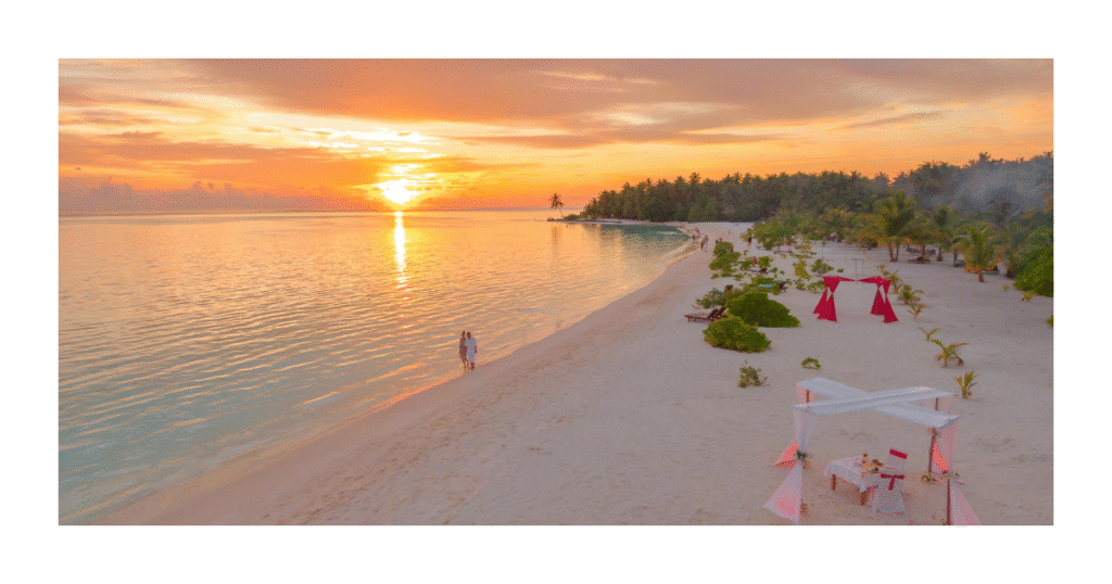 夕暮れ時には、オレンジ色の空と海が溶け合う絶景が広がり、サンセットスポットとしても人気。